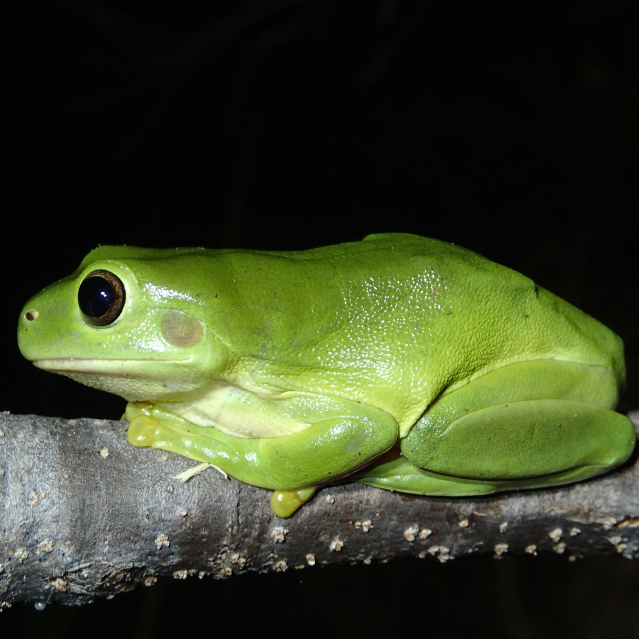 A frog is any member of a diverse and largely carnivorous group of short-bodied, tailless amphibians composing the order Anura (literally without tail in Ancient Greek). The oldest fossil "proto-frog" appeared in the early Triassic of Madagascar, but molecular clock dating suggests their origins may extend further back to the Permian, 265 million years ago. Frogs are widely distributed, ranging from the tropics to subarctic regions, but the greatest concentration of species diversity is in tropical rainforest. There are about 7,300 recorded species, which account for around 88% of extant amphibian species.[1] They are also one of the five most diverse vertebrate orders. Warty frog species tend to be called toads, but the distinction between frogs and toads is informal, not from taxonomy or evolutionary history.